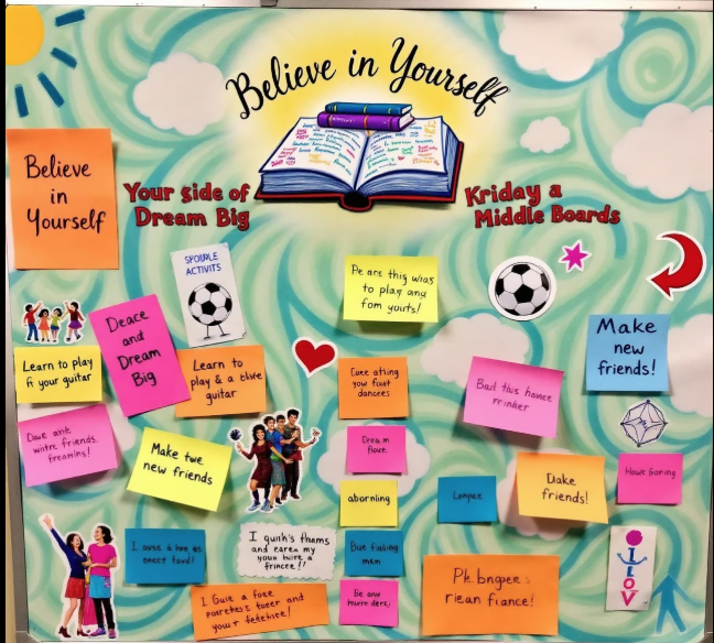 Interactive Updates: Encourage students to add new goals or update old ones as the year progresses. This not only keeps the vision board relevant to their evolving needs but also teaches flexibility and adaptability—key skills for overcoming challenges and adjusting plans as circumstances change.