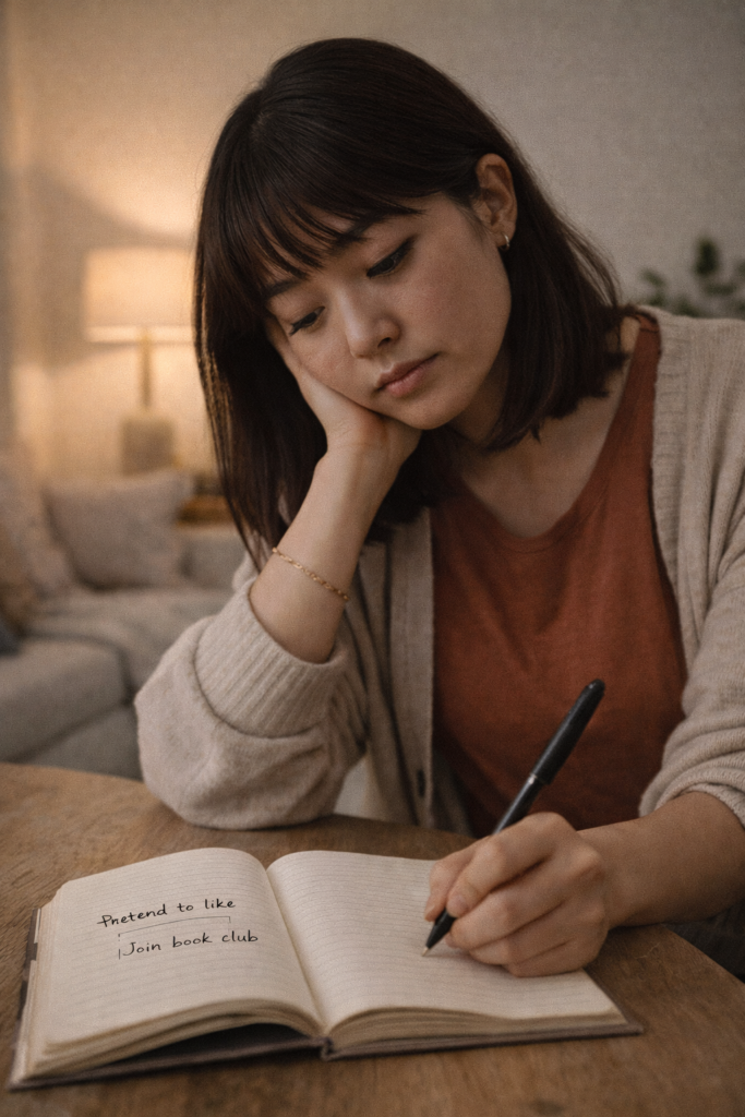 One doable action today: Notice when you’re performing instead of being. Write down one thing you pretend to like, one opinion you fake, or one interest you’ve outgrown but keep claiming.