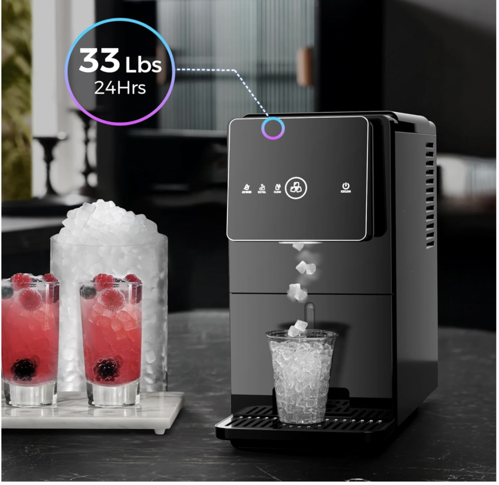It fits easily on a countertop and produces a generous amount of ice daily. For families, small offices, break rooms, or even dorm spaces, it makes everyday routines more convenient.